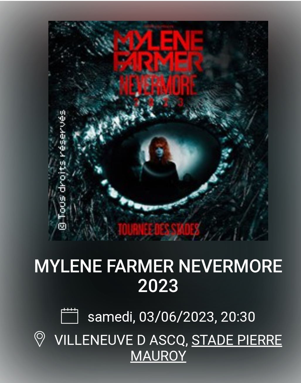 Place carré or Nevermore Stade Mauroy Lille