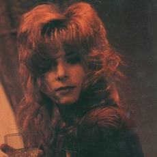 Vêtue d'une robe en velours rouge et fume-cigarette à la bouche, elle a tout d'une vamp.