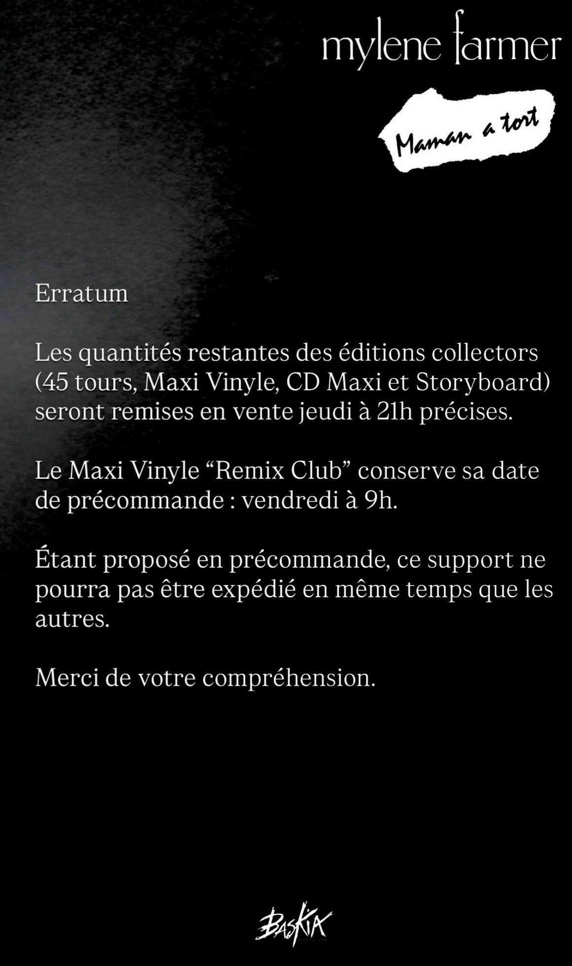 Ce que je ne comprends pas, c'est que ce matin, le vinyle était sold out en 6 min, puis remis en vente dans l'après midi et là, à 21.53 il est encore de dispo. Vraiment limité à 1500 ex. ?