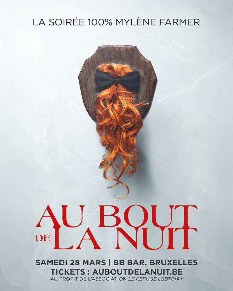 ?AU BOUT DE LA NUIT - la soirée 100% Mylène Farmer ? SAMEDI 28 MARS au BB BAR, Bruxelles Au profit de l'association LE REFUGE LGBTQIA+ TICKETS : www.auboutdelanuit.be AU BOUT DE LA NUIT est une soirée créée par et pour les fans de Mylène Farmer à Bruxelles. Une sélection de titres emblématiques, remixes et versions live pour danser et chanter jusqu'au bout de la nuit. TICKET : auboutdelanuit.be