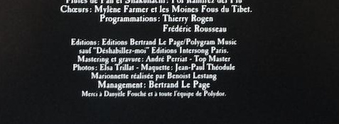 ℗ 1988 Laurent Boutonnat sauf A2, A5, B4 ℗ 1987 Laurent Boutonnat © 1988 Polydor Paris