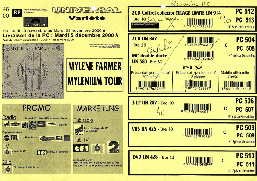 Mylène Farmer - Mylenium Tour - Bon de précommande