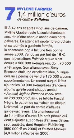 Top DVD de concerts – « Mylène Farmer Stade de France » numéro 1
