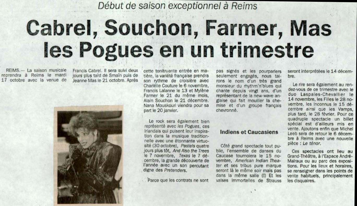 Cabrel, Souchon, Farmer, Mas, les Pogues en un trimestre